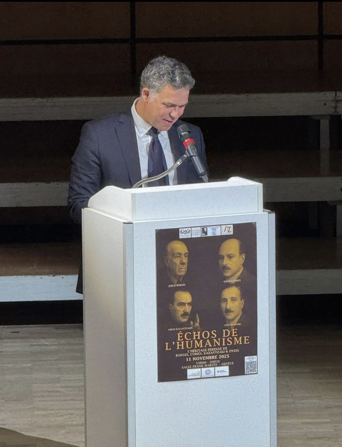 Μια πολύ ουσιώδης και εμπνευσμένη συζήτηση σχετικά με την ανάγκη να επαναφέρουμε τον ανθρωπισμό στο προσκήνιο, αντλώντας πολύτιμα διδάγματα από το έργο τεσσάρων σπουδαίων συγγραφέων και στοχαστών της παγκόσμιας λογοτεχνίας: του Νίκου Καζαντζάκη, του Stefan Zweig, του Jorge Luis Borges και του Albert Cohen, καθώς και από το όραμά τους για την ειρηνική συνύπαρξη όλων των λαών του κόσμου. Θερμές ευχαριστίες στον Δήμαρχο της Γενεύης, κ. Alfonso Gomez, για τα εμπνευσμένα λόγια του και για όλα όσα εκπροσωπεί η πόλη του: ενσάρκωση του ανθρωπισμού, καταφύγιο για τους διωκόμενους, χώρος διαλόγου και συμφιλίωσης, γενέτειρα του ανθρωπιστικού δικαίου και της ιδέας ότι η ανθρώπινη αξιοπρέπεια δεν γνωρίζει σύνορα.
